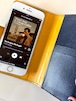 上質な本革のスマホケース。紅型はハイビスカスの「あかばな」をあしらいました。スライドタイプなので機種が変わってもお直しで使うことが出来ます(ケースのサイズに合えば可能です)贈り物としても。