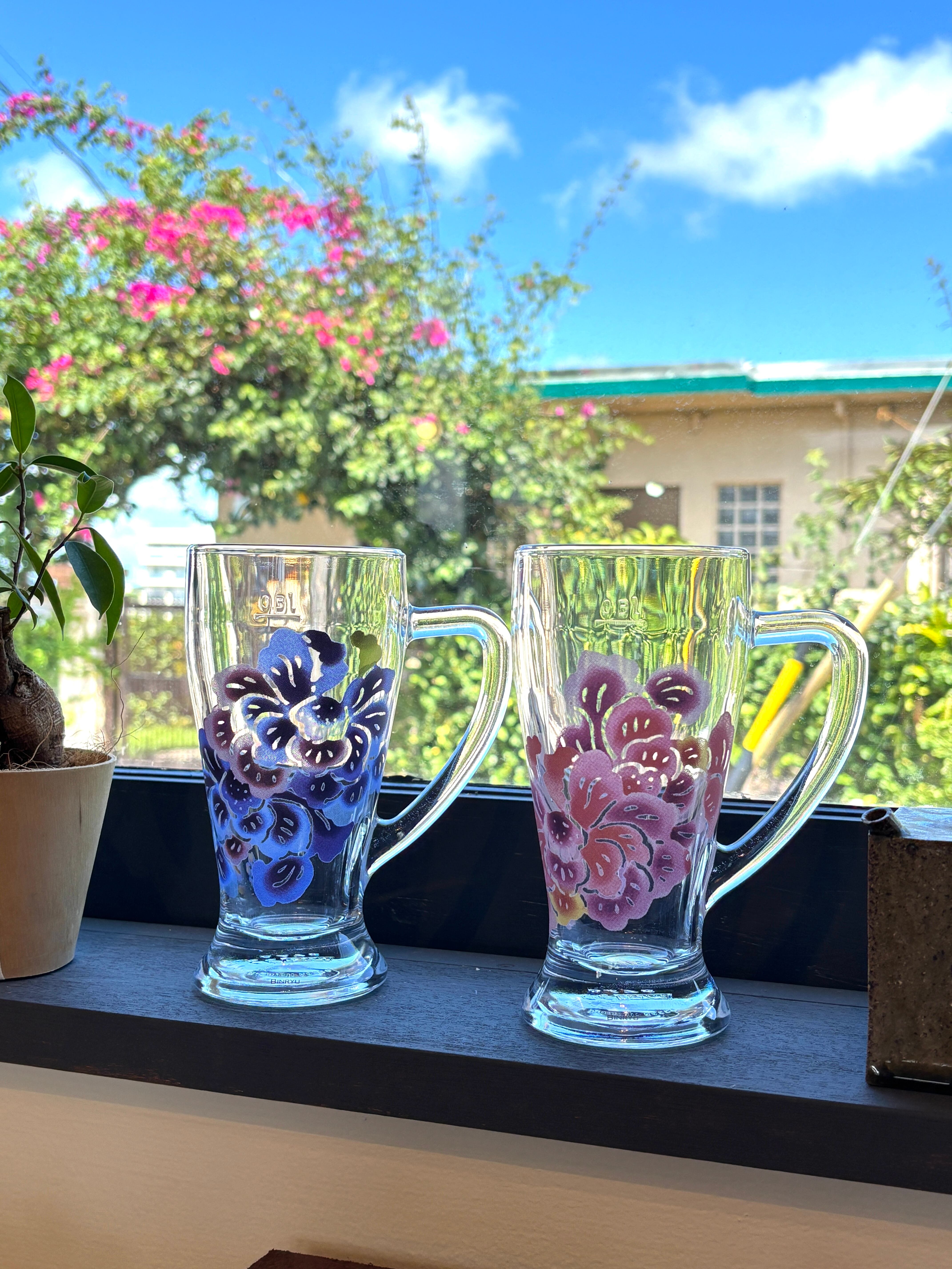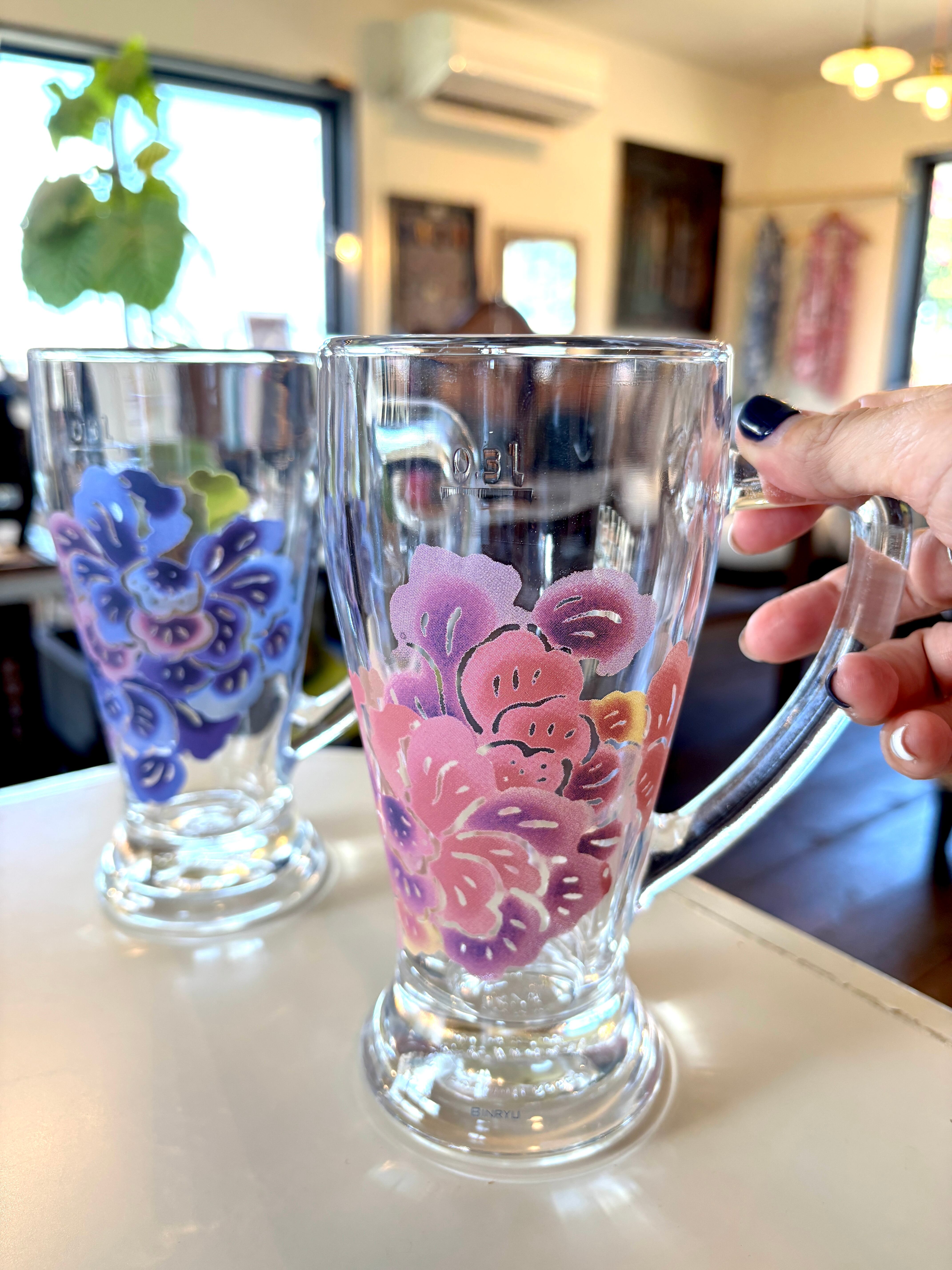 スマートシルエットのジョッキグラス。ハイビスカスがモチーフです。ビール・ハイボール・酎ハイだけでなく炭酸水なども!いつもより美味しく感じます^^通常は無地箱です。オリジナルデザインのギフトボックスをご希望の方はギフトボックス(追加¥220)をご選択ください。*ラッピングご希望の方は(無料です)ご購入の際に備考に【ラッピング希望】とご入力下さい。