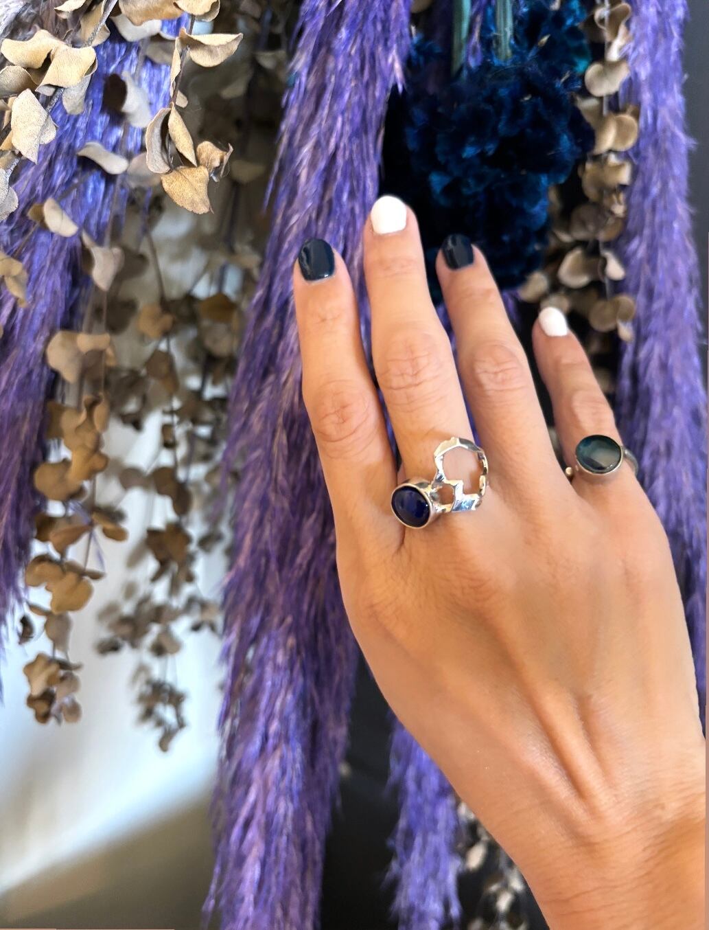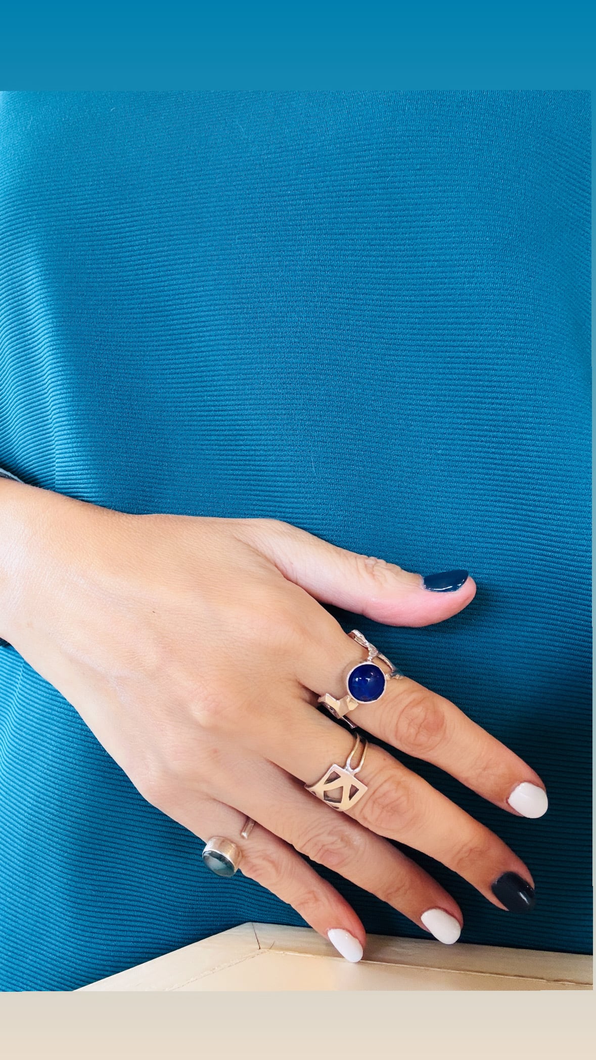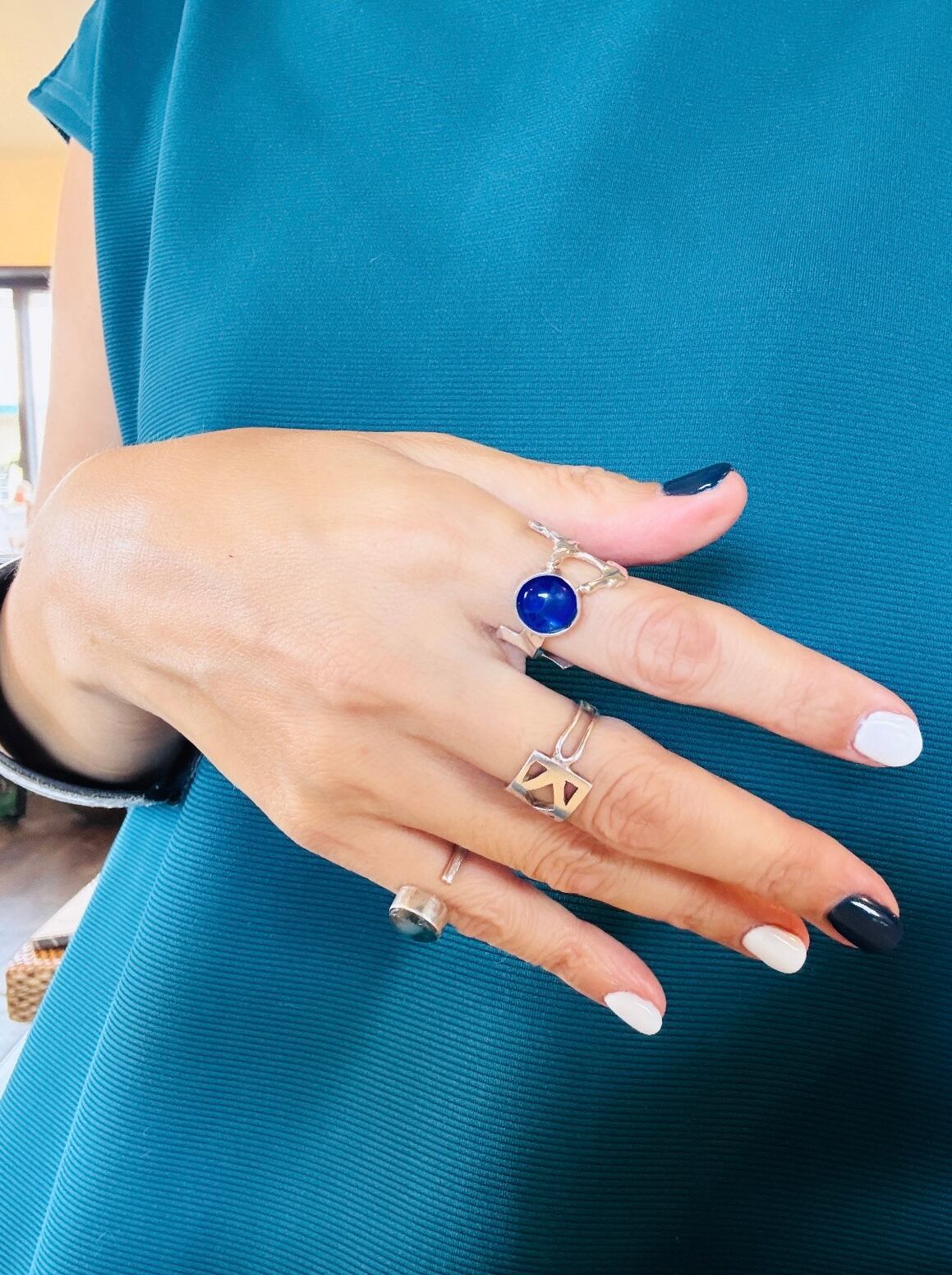琉球ガラスをフュージングという技法で再生しています。「波の綾」はさざ波がつくり出す水面の模様。沖縄の海をイメージしたコレクションです。 Material:琉球ガラス / シルバー925 Saize :15号