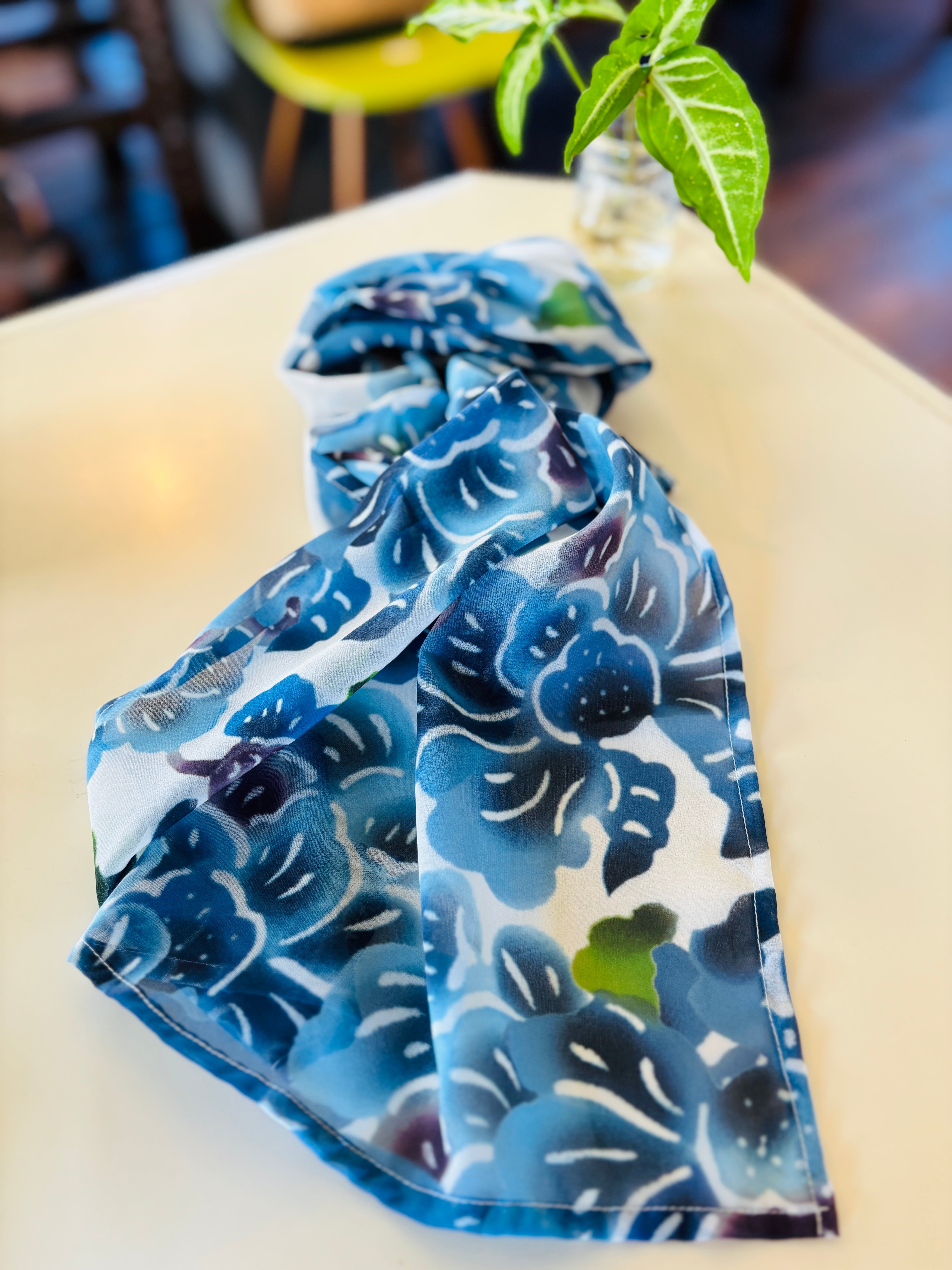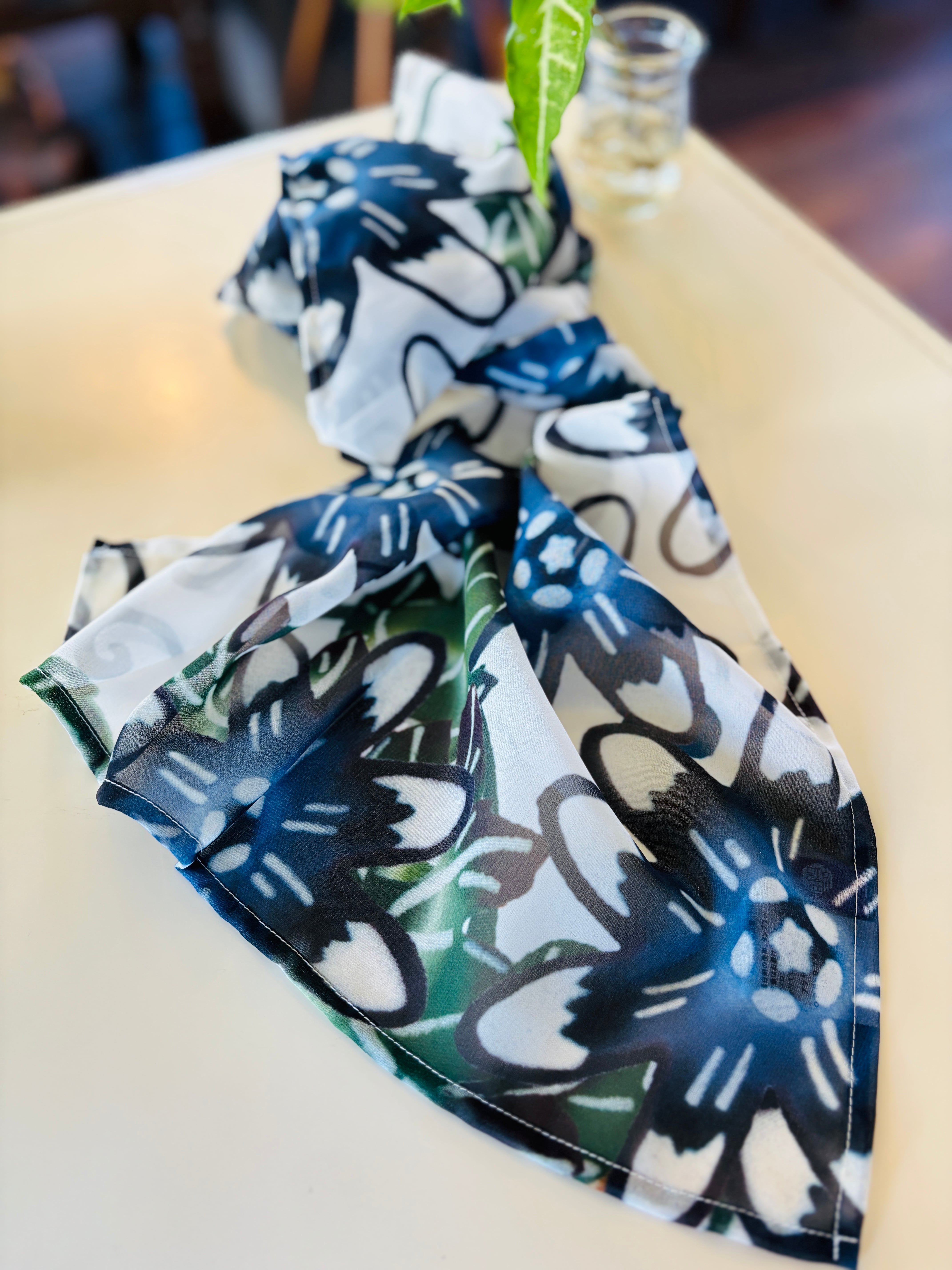 A flower shawl which feels tropical in the BINGATA design on Chiffon.