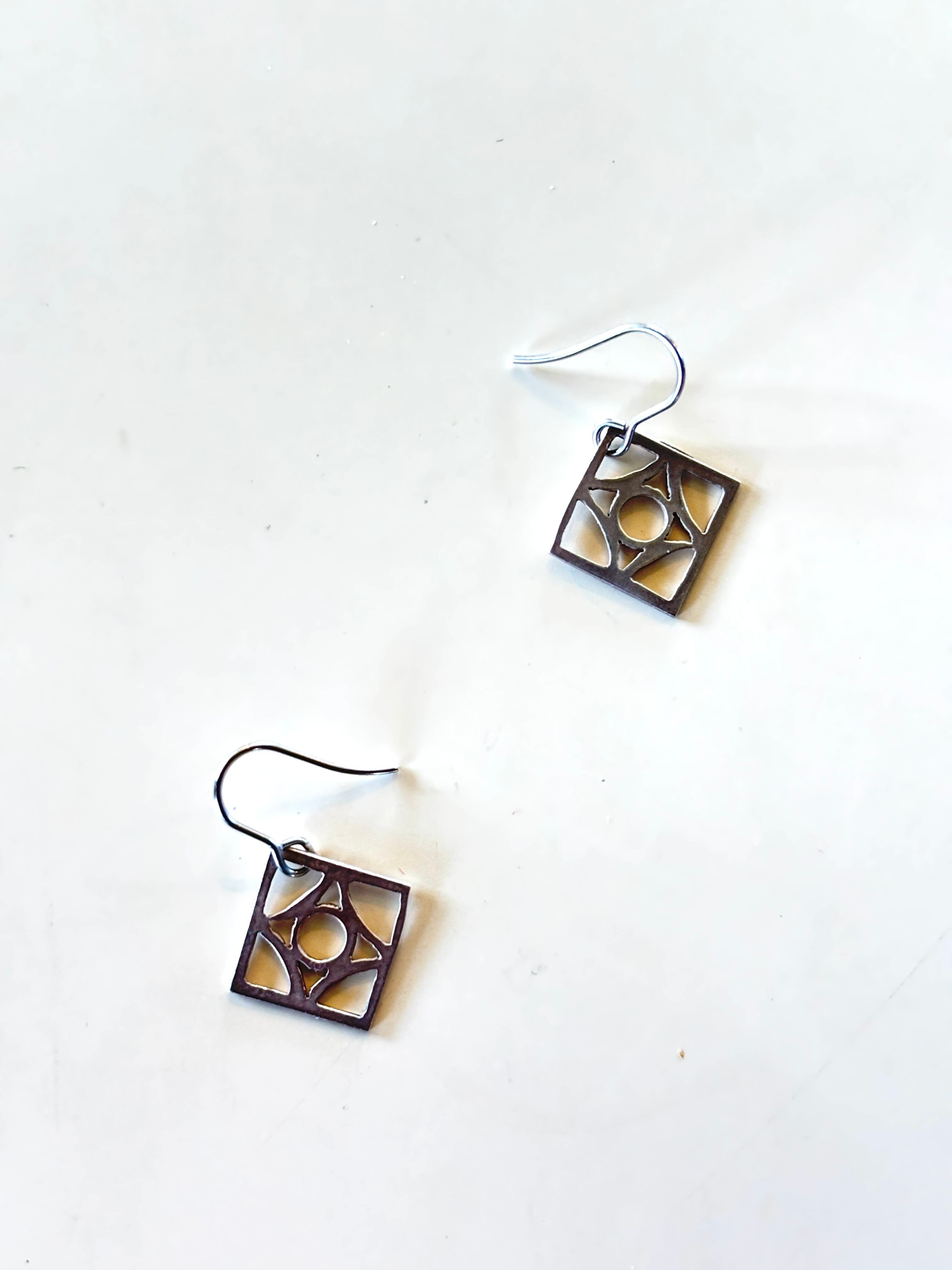 御守りジュエリー「KAFU」シリーズ花ブロックのフックピアスです。我が家は築50年以上の外人住宅。まわりにはなんだか懐かしいような雰囲気が漂う幾何学模様の花ブロックが優しく家を守ってくれています。何十年もの時を経て今なお愛されるモチーフ。理想のデザインのあり方で憧れます。その姿を小さく、小さくそのままに御守りのように作ってみました。直接耳につけるフックは金属アレルギーの方でも比較的安心してご使用いただけるサージカルを使用しています。(私も金属アレルギーですが大丈夫なのでおすすめです)