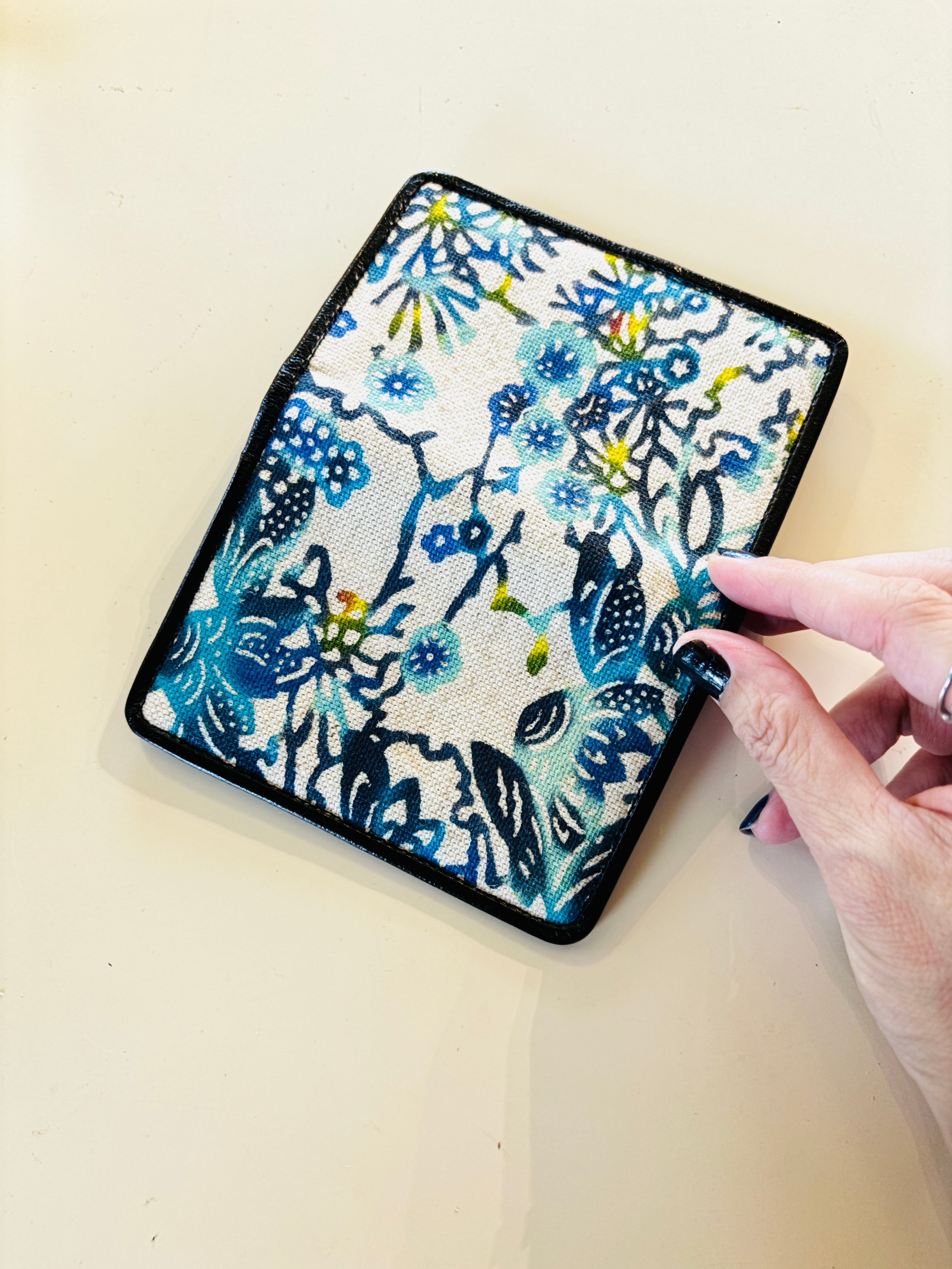 贅沢に全面紅型をあしらっています。名刺も素敵なご縁のところへ飛び立っていけるように、ハイビスカスが羽のようになっています。内側はシックな黒革です。