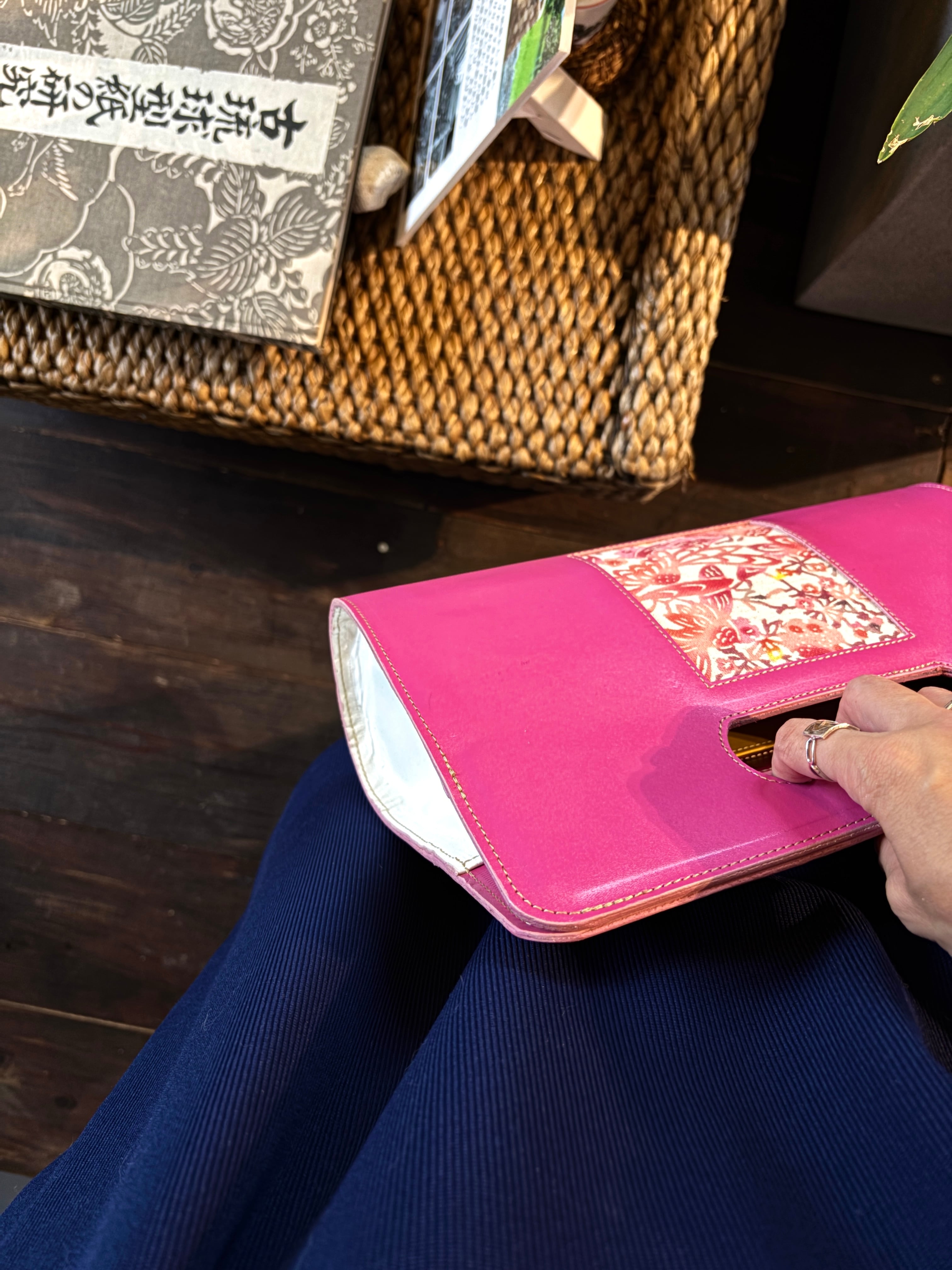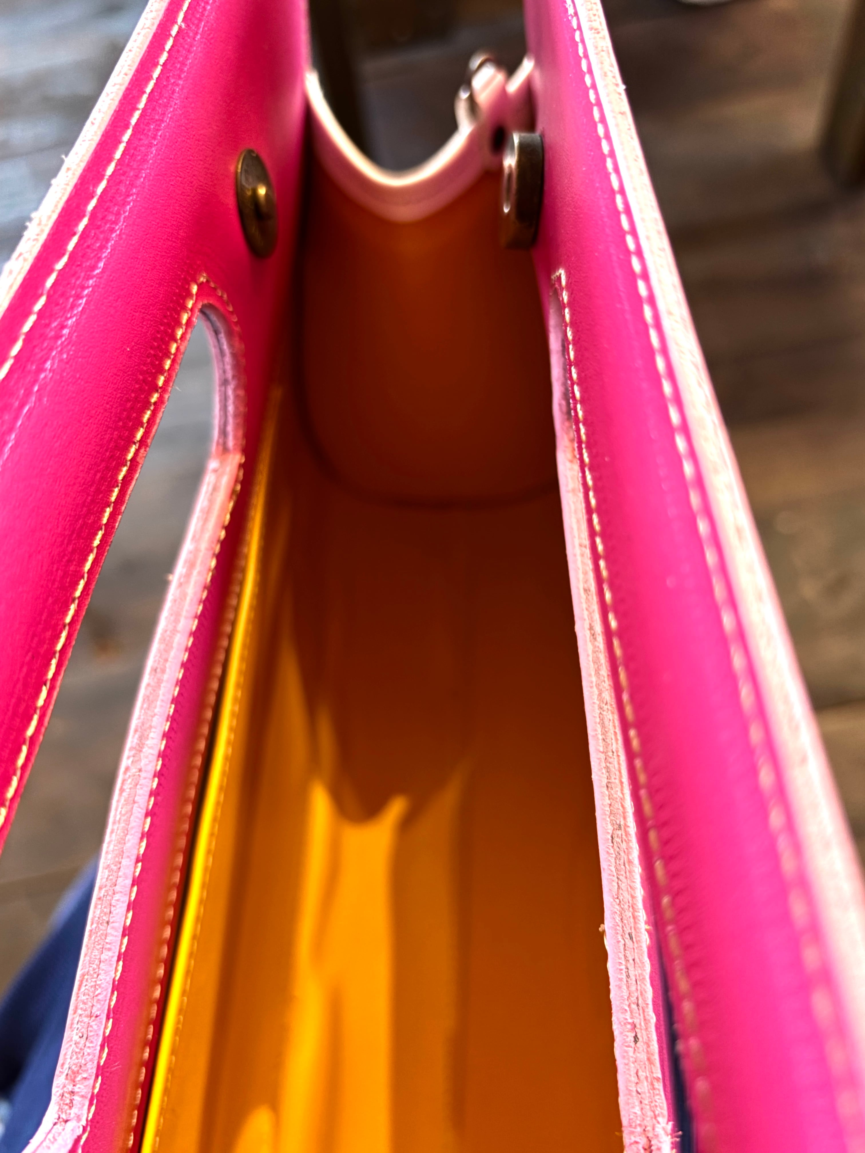 ショッキングピンクにサイドはホワイト。中にはピンクとイエローと元気なカラーとなっています。